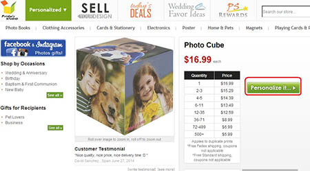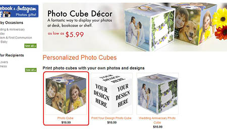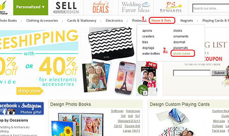 Hover the mouse-cursor over the Home & Pets tab and click photo cubes