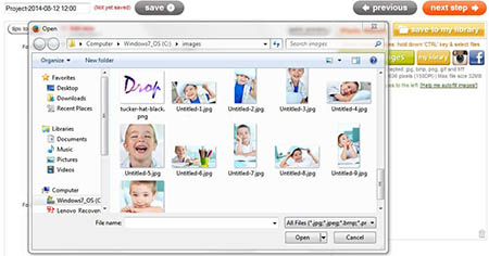 - Select the image file you wish to upload and click Open. Uploaded images are located inside the Photo Album box on the right side of the screen