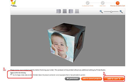 You will see a preview of your personalized item at this step. Click Previous button at the bottom of the page if you need to make any changes to your design.