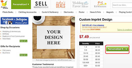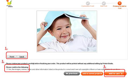 You will see a preview of your personalized item at this step. Click Previous button at the bottom of the page if you need to make any changes to your design.