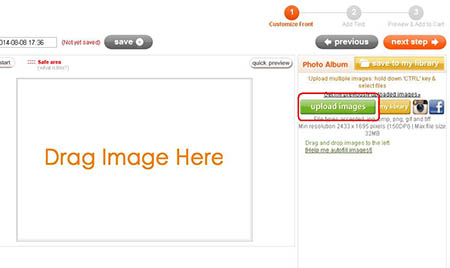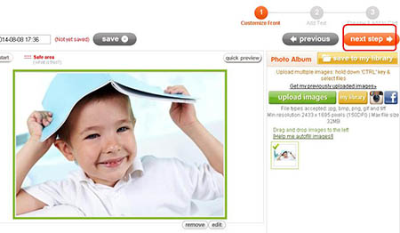 NOTE: If the image size, resolution or format is below our minimum requirements, you will receive an error message. Please rescan your image at a higher resolution or select another image. Please refer to our Image Requirements for more information.