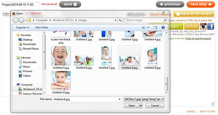 - Click on Upload images to view the files on your computer's hard drive, floppy drive or digital camera