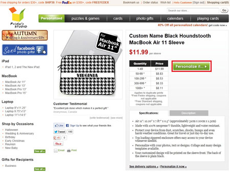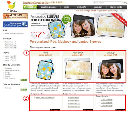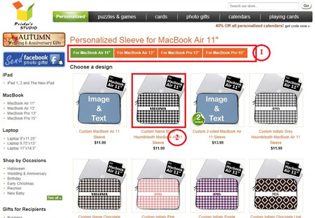 Hover the mouse-cursor over the Photo Gifts tab and click iPad/MacBook/laptops under text photo sleeves