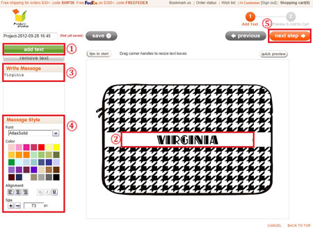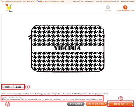 You will see a preview of your personalized item at this step. Click Previous button at the bottom of the page if you need to make any changes to your design.