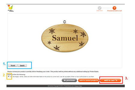 You will see a preview of your personalized item at this step. Click Previous button at the bottom of the page if you need to make any changes to your design.